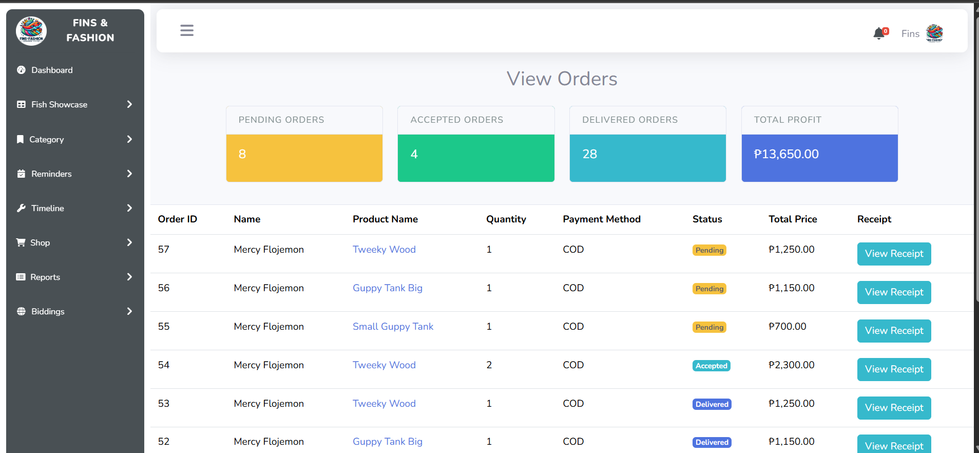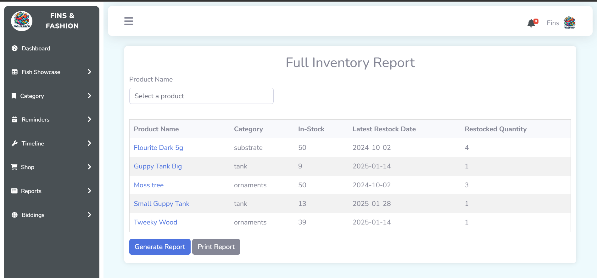 Fins & Fashion Management System